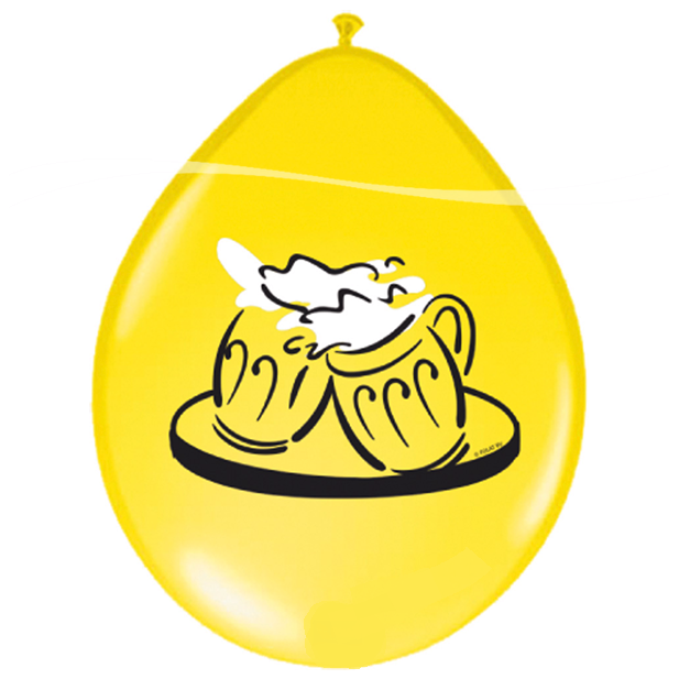 Leuke gele ballons met bierpul opdruk. Extra gezellig om een oktoberfeestje mee op te fleuren! 8 stuks per zakje.