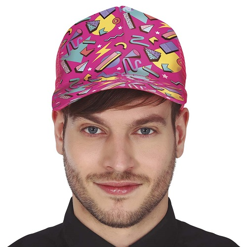 Toffe jaren 80 basaball cap met een roze 80ties printje. Super leuk accessoir voor bij je 80ties outfit.De pet is one size, maar wel verstelbaar.