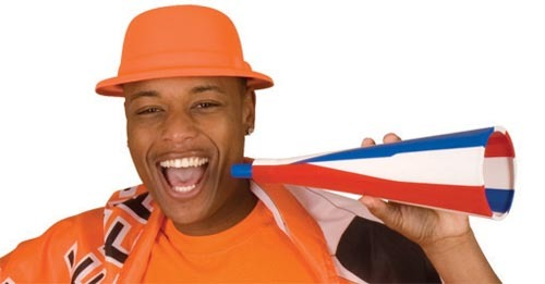 Grote rood wit blauwe toeter. Voor lekker veel herrie. in het stadion bij een ek of wk voetbal of voor koningsdag.