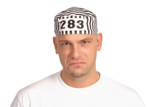 Goeie pet voor een boef. Met zwarte strepen en een nummer. One size.