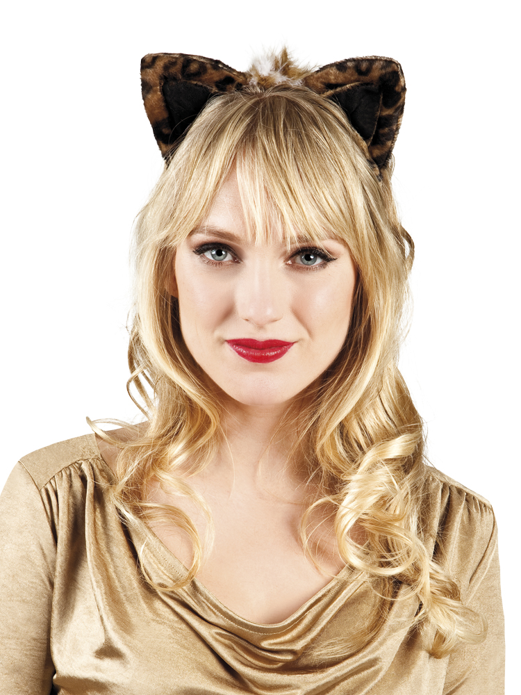 Leuke stoffen diadeem met luipaard oortjes. One size, maar past altijd.