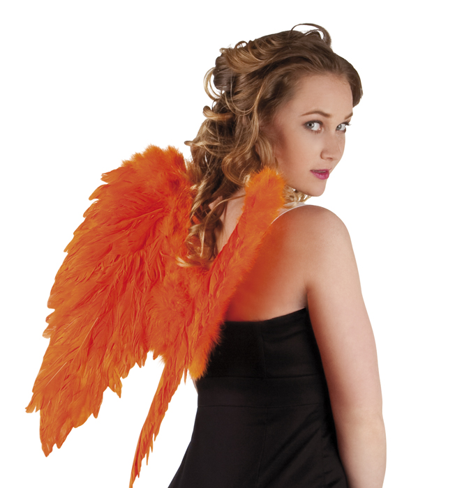 Prachtige oranje engelen vleugels van 50×50 cm. Goed te bevestigen en van mooie kwaliteit.