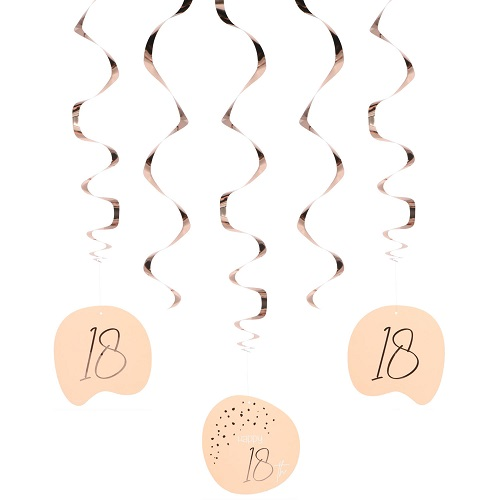 Een pakje met 5 draaiguirlandes in het poederroze met een rosé gouden 18 jaar opdruk.