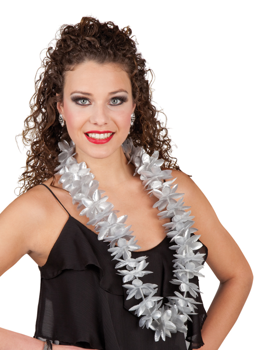 Mooie zilveren Hawai krans. Leuk voor een Hawaï feestje, maar ook leuk bij een gold en silver party, een bruiloft of als uitdeel artikel.