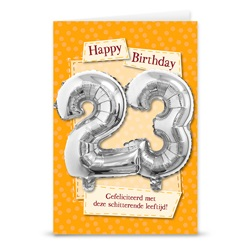 Ansichtkaart met leeftijd folieballonnen 23 jaar. De ballon is 30cm