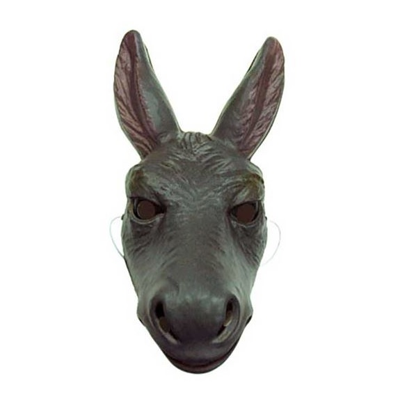 Plastic ezel masker. Het beste geschikt voor kinderen, maar als je het niet erg vindt dat het niet je hele gezicht gedekt is hij ook geschikt voor volwassenen. Met een elastiekje om te doen.