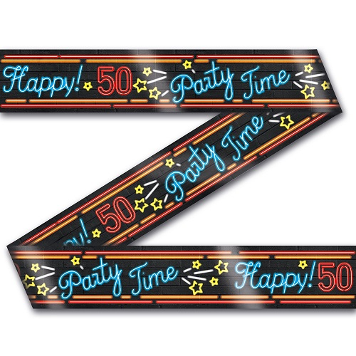 Afzetlint of markeerlint van plastic van 12 meter lang met een neon 50 jaar opdruk. Zowel goed buiten als binnen te gebruiken. Ook leuk om een groot cadeau mee in te pakken.