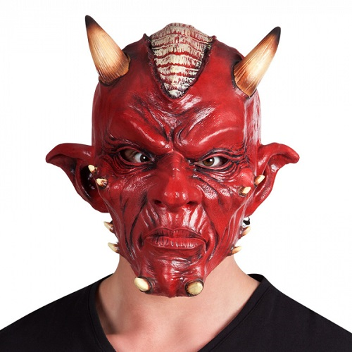 Prachtig latex hoofdmasker van een duivel. Dit Devil masker gaat over het hele hoofd, het bedekt dus ook de achterkant.