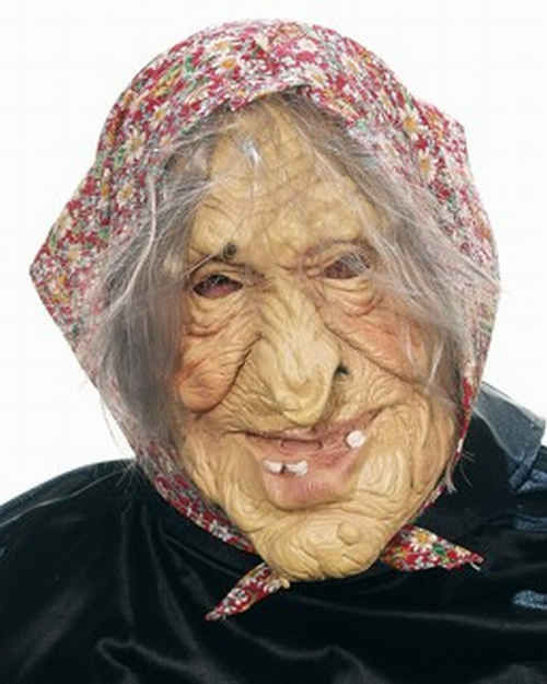 40601.02 Masker oude vrouw met hoofddoek en haar