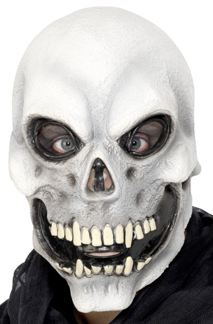 Latex masker van een wit skelet. Het masker bedekt het gehele gezicht en de helft van het achterhoofd. Het is gemaakt van zacht rubber, dus het zit prettig.