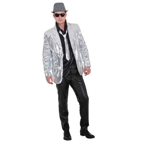 Mooi glitterjasje van stevig materiaal dat compleet bestikt is met zilveren pailletten. Het show jasje is verkrijgbaar in de maten: