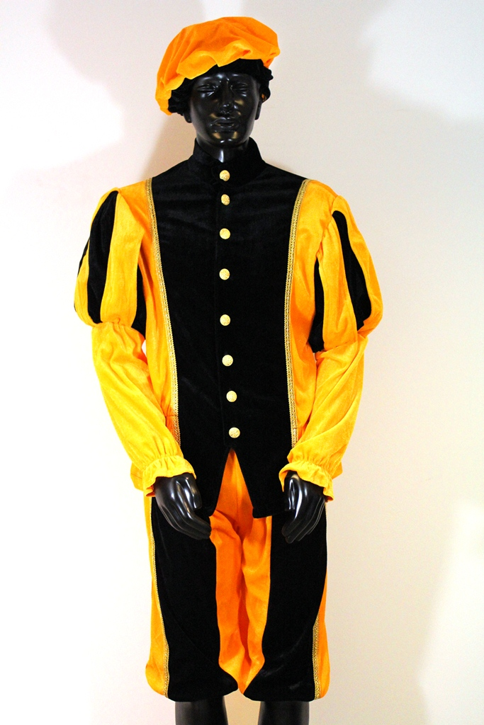 Mooi pietenpak in een hele goede kwaliteit/prijs verhouding. Dit pak van imitatie fluweel is gewoon wasbaar, ziet er goed uit en is wel heel betaalbaar. U krijgt een baret, een jas en een broek. Allemaal leuke heldere kleuren. Kijk in het rolmenu naar de verschillende maten. De eerste genoemde kleur is de kleur van het binnenpand, de andere kleur zit aan de zijkant van het pak. Let op: de pakken vallen ruim.