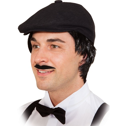 Mooie zwarte stoffen platte pet voor een type uit de jaren 20. Te gek dus voor een gangster, maffia of charleston feest. One size, ongeveer hoofdmaat 59.
