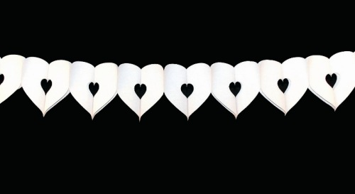 Witte harten slinger van 6 meter lang. Gemaakt van papier. Hoogte van het hart: 13cm.