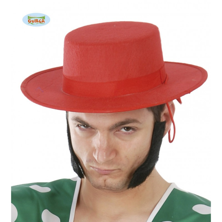 Hard vilten Spaanse hoed in het rood. Met een touwtje zodat je hem om je hoofd kunt binden.