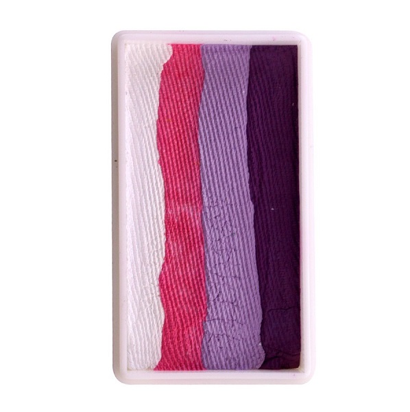 Splitcake is een schmink op waterbasis waarmee je meerdere kleuren in één streek op het gezicht kunt zetten. Je kunt met een breed penseel (speciaal splitcake penseel) alle kleuren in één keer opzetten, maar met een smaller penseel kunt je ook bijvoorbeeld maar twee of drie kleuren in één keer gebruiken. Met deze techniek kun je prachtige vlinders maken, maar ook hele mooie effecten creëren boven de ogen. Het is even oefenen, maar dan heb je ook wat.