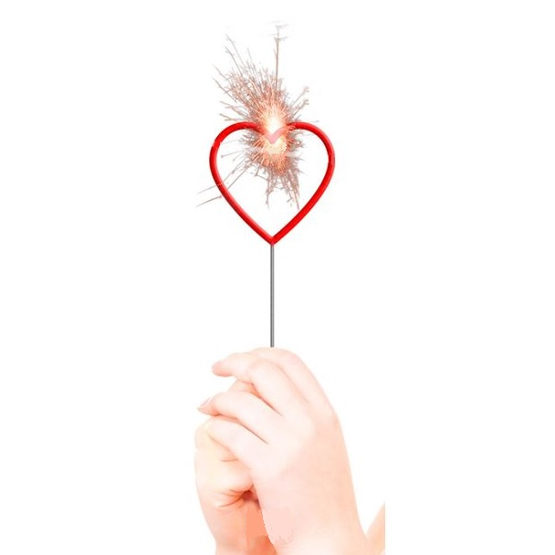 Mooi groot rood sterretje in de vorm van een hartje. Het vuur is gewoon goud/zilver zoals een gewoon sterretje.