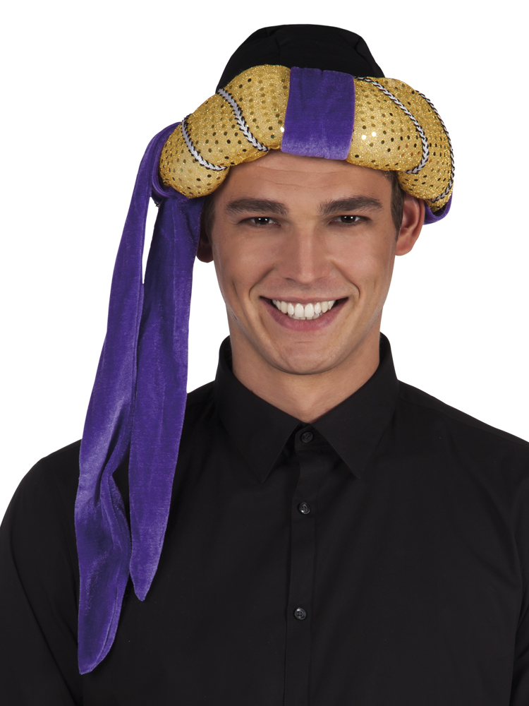 Mooie stoffen tulband. Leuk voor een sheik of sultan. One size, maar is een beetje rekbaar dus past op bijna alle hoofden.