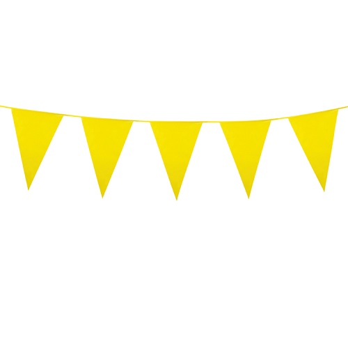 Plastic gele lange vlaglijn of slinger van 10 meter lengte. Zowel binnen als buiten te gebruiken.