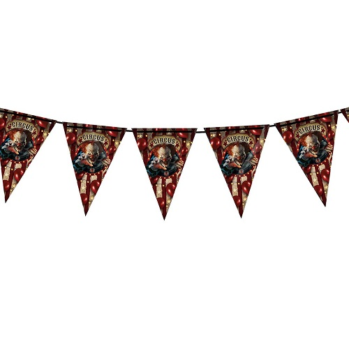 Leuke en vooral enge Halloween slinger met de opdruk van een scary circus clown.
