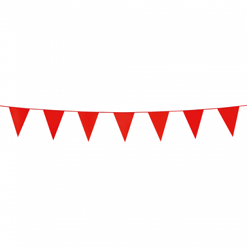 Kleine mini slinger in het hard rood. Deze rode vlaglijn is 3 meter lang en heeft kleine punt vlaggetjes van 15cm groot. Van plastic, dus ook goed geschikt om buiten op te hangen.